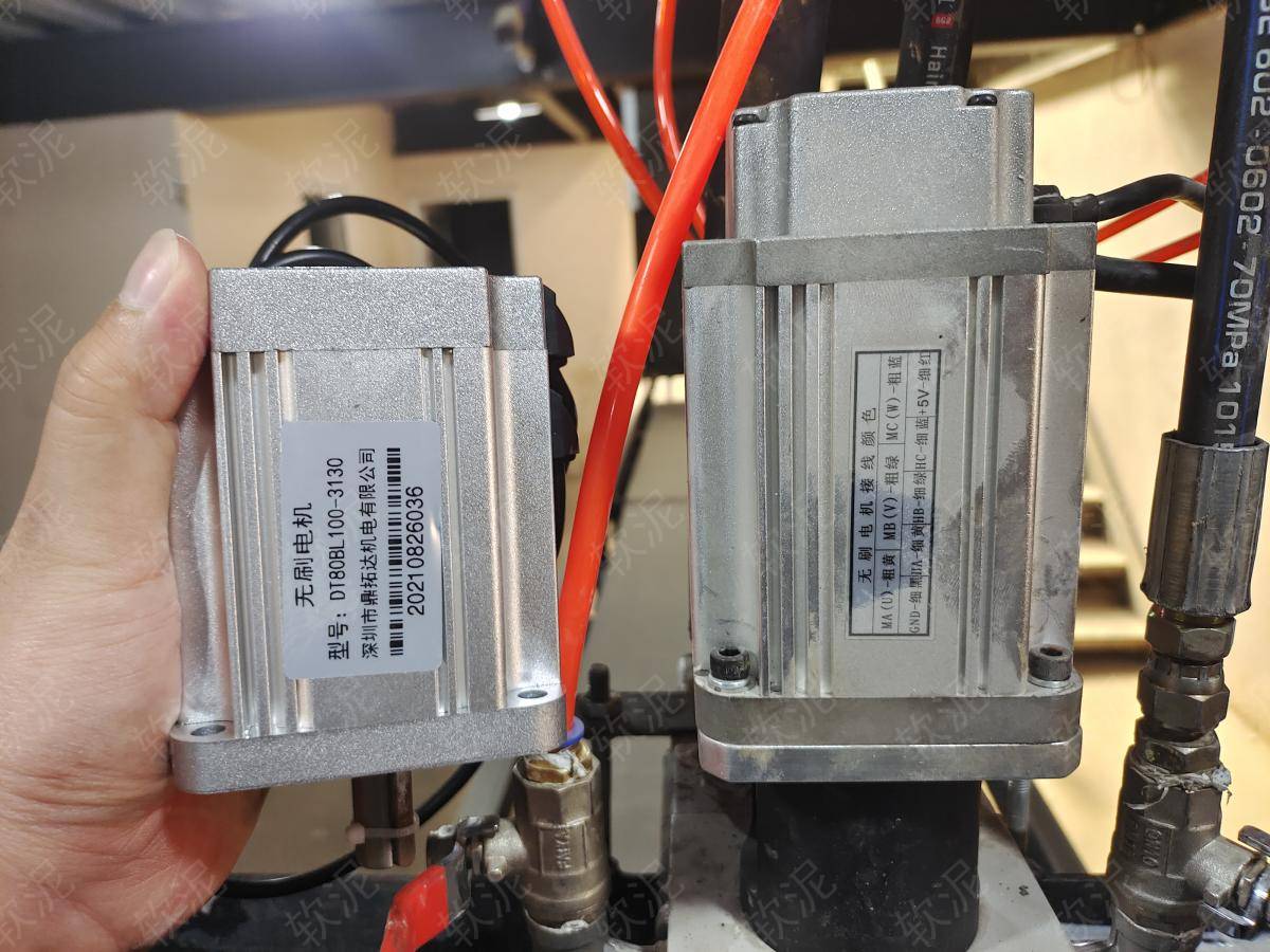 1. 軟泥PLC控制步進(jìn)電機(jī)、伺服電機(jī)、直流無刷電機(jī),對各種原料進(jìn)行精準(zhǔn)的出料控制,每個原料的速度可通過觸摸屏隨時調(diào)整。 2. 所有設(shè)定參數(shù)自動保存,具備掉電存儲功能,斷電后重新上電,能自動恢復(fù)最后的設(shè)定值。 3. 生產(chǎn)期間給傳送帶啟停信號,由接觸器控制傳送帶通斷電。 4. 紅外激光對射技術(shù)來判定材料是否到達(dá)合適位置,給電動氣閥開關(guān)信號來啟停出料設(shè)備。 5. 各個分機(jī)應(yīng)答信號出問題,會在觸摸屏顯示具體故障原因,并停止設(shè)備運(yùn)行,避免浪費(fèi)原料。 |