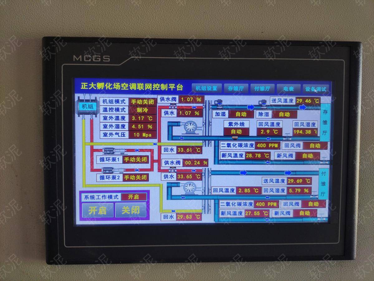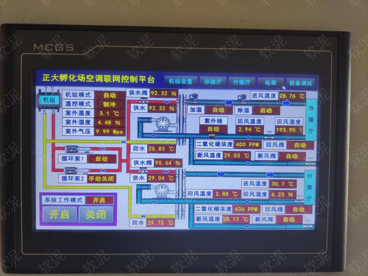 1. 中央空調系統(tǒng)為雛雞提供舒適的生存環(huán)境,避免驟冷驟熱刺激,同時使用二氧化碳檢測傳感器對環(huán)境進行檢測,ppm過高時緩慢調節(jié)新風閥比例加入新風。 2. 使用壓差傳感器對室內外氣壓進行檢測,通過調節(jié)回風閥比例實現室內正壓環(huán)境,避免室外污染物進入。 3. 軟泥聯網設備能將所有傳感器數據實時傳入云端,所有工作人員均可查看和操作,不限人數。每人建立實名賬戶,任何操作均產生操作記錄。 |